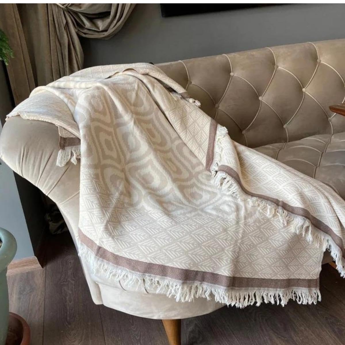 Casasofté May Cozy Jacquard Blanket Turkish Throw Blanket | 51 x 66 inches Soft Turkish Cotton Blanket | Bedding Decor Bedspread